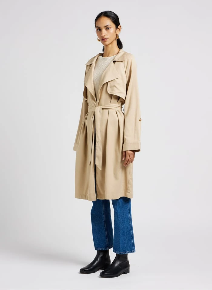 Ce modèle est présenté avec Tee shirt à col rond en coton by SOEUR, Foulard imprimé fleuri en coton by MARIE SIXTINE, Bottines plates en cuir lisse by SOEUR