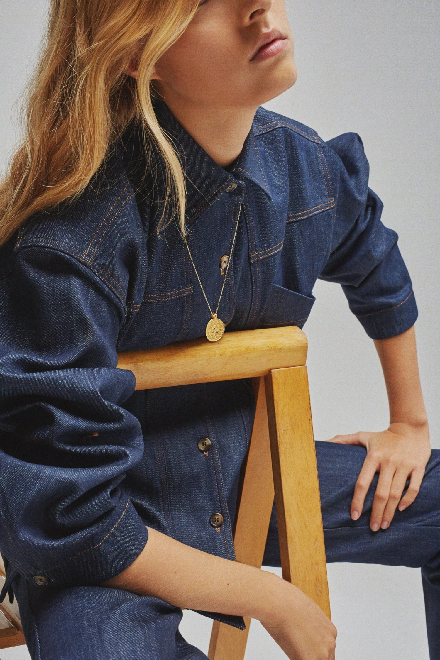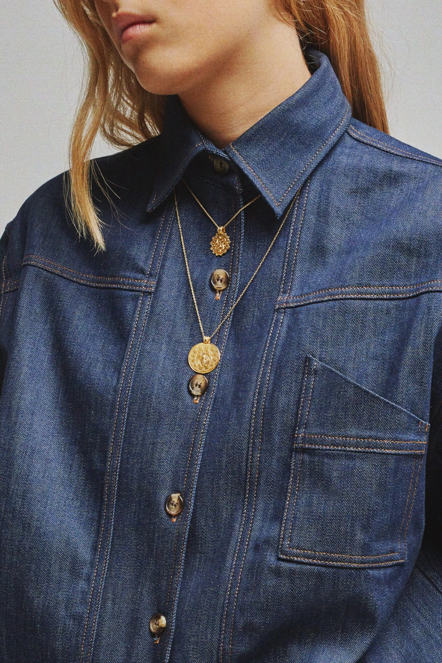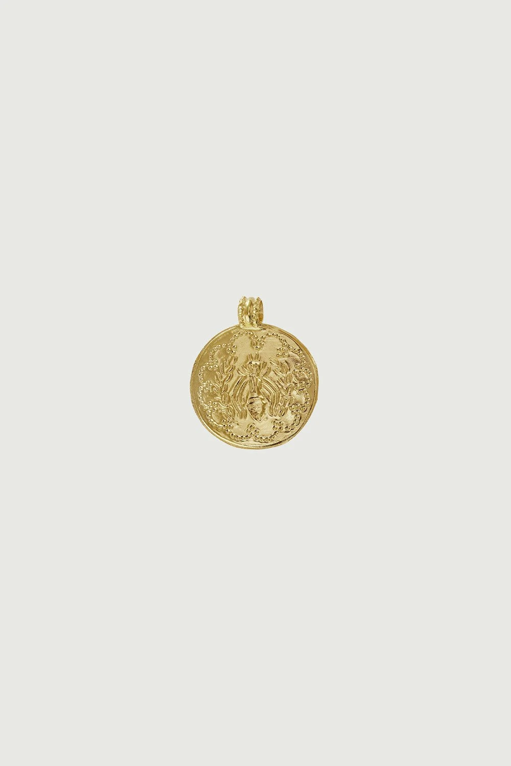 DOMITILLE 3 est un pendentif rond en vermeil décoré d’une abeille.