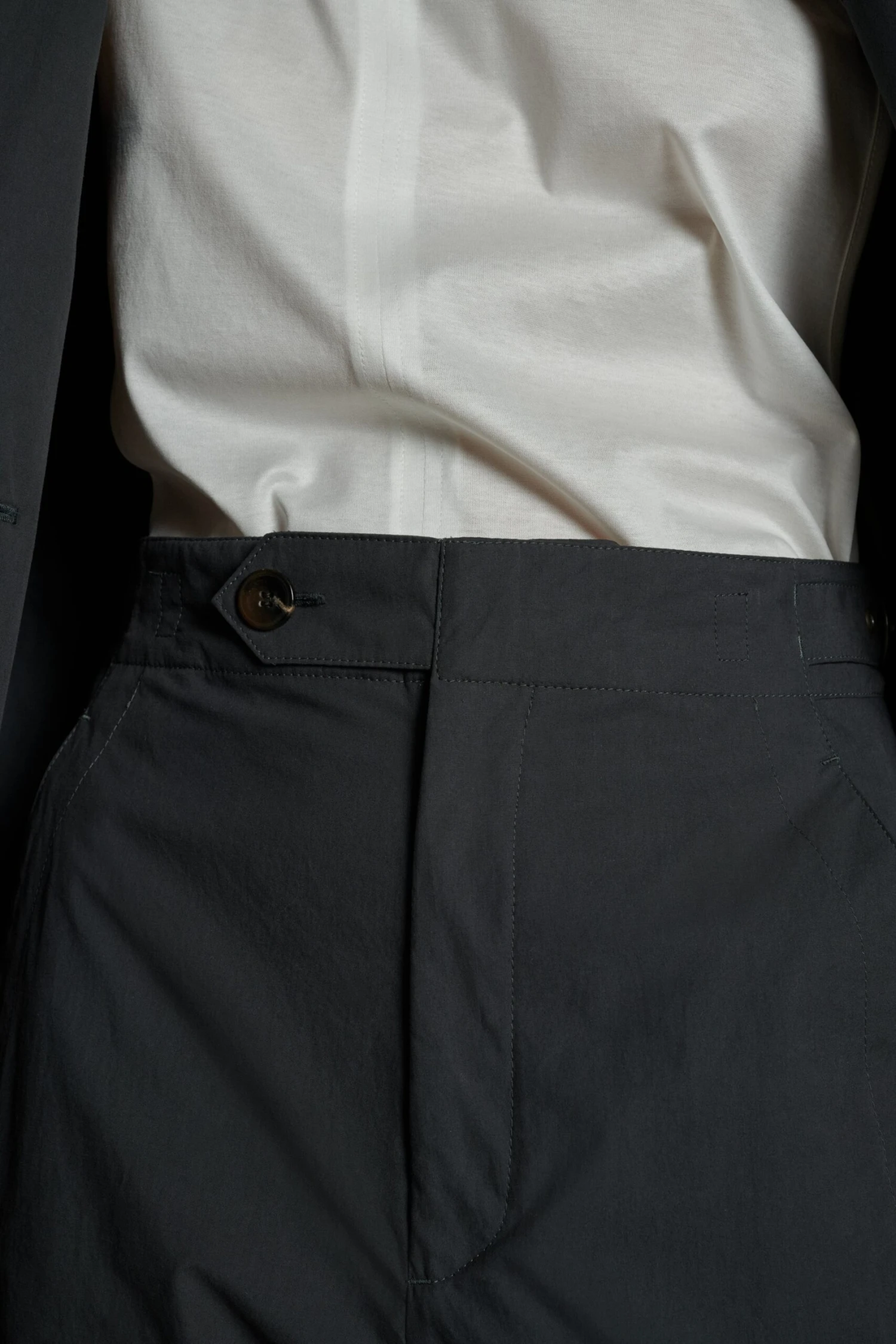 PRESTON est un pantalon en popeline de coton fine et légère. Sa taille haute est ajustable grâce des pattes de resserrage boutonnées. A associer au blazer SEVRES pour un costume d’été.