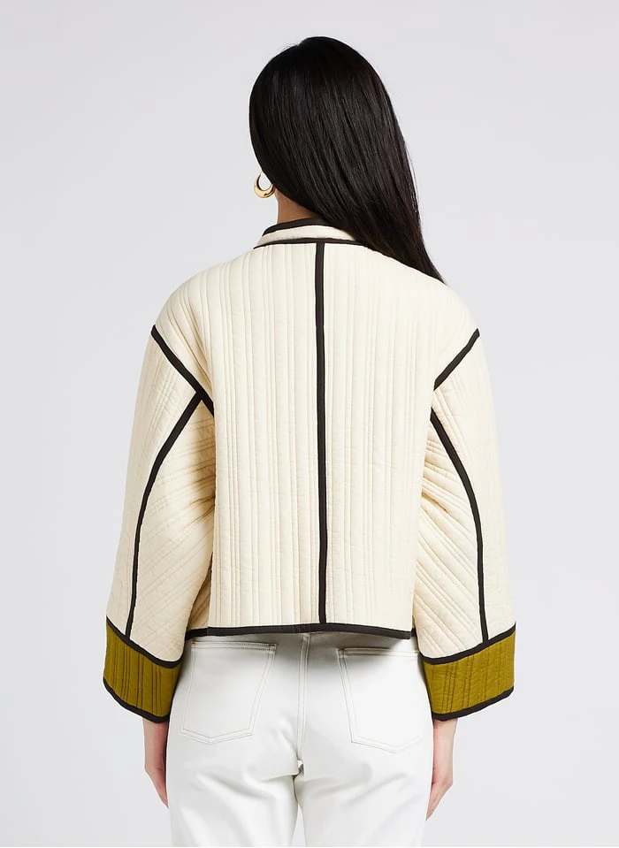 Ce modèle est présenté avec Foulard en soie imprimé by SOEUR, Sac bandoulière en cuir glacé by SOEUR, Jean droit en coton by SOEUR, Mules plates en cuir by SOEUR
